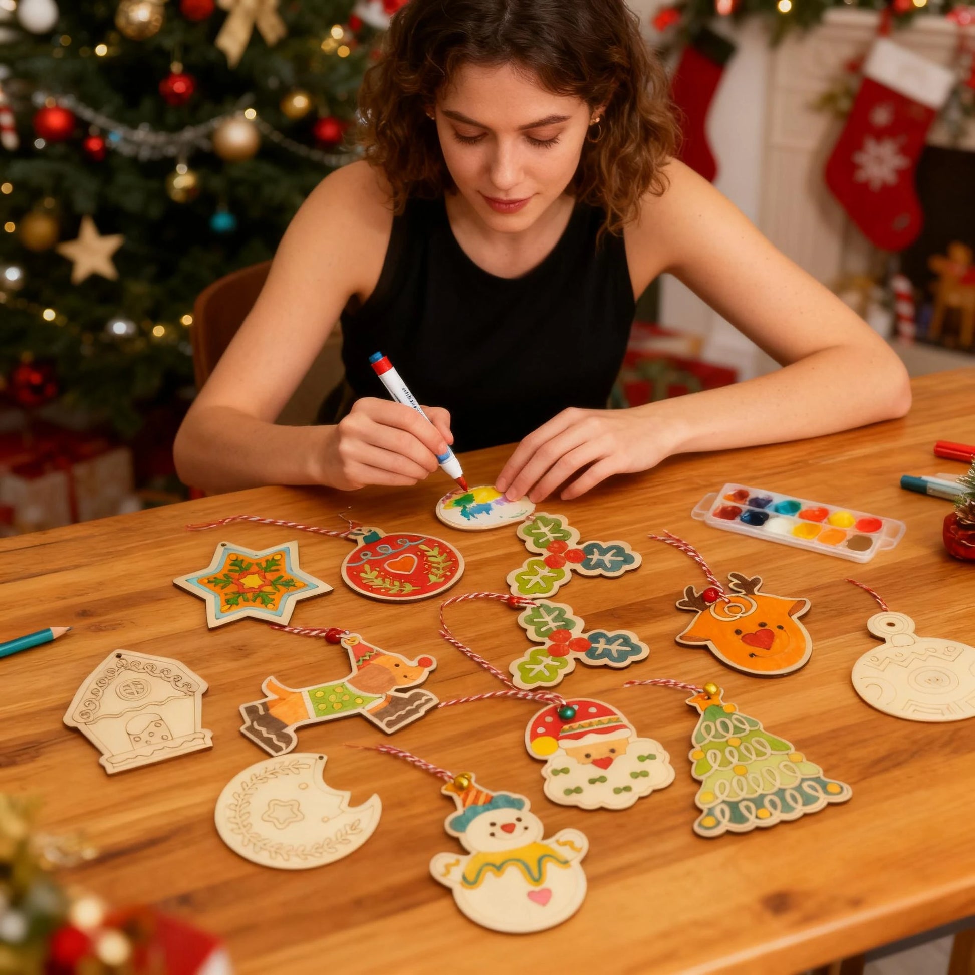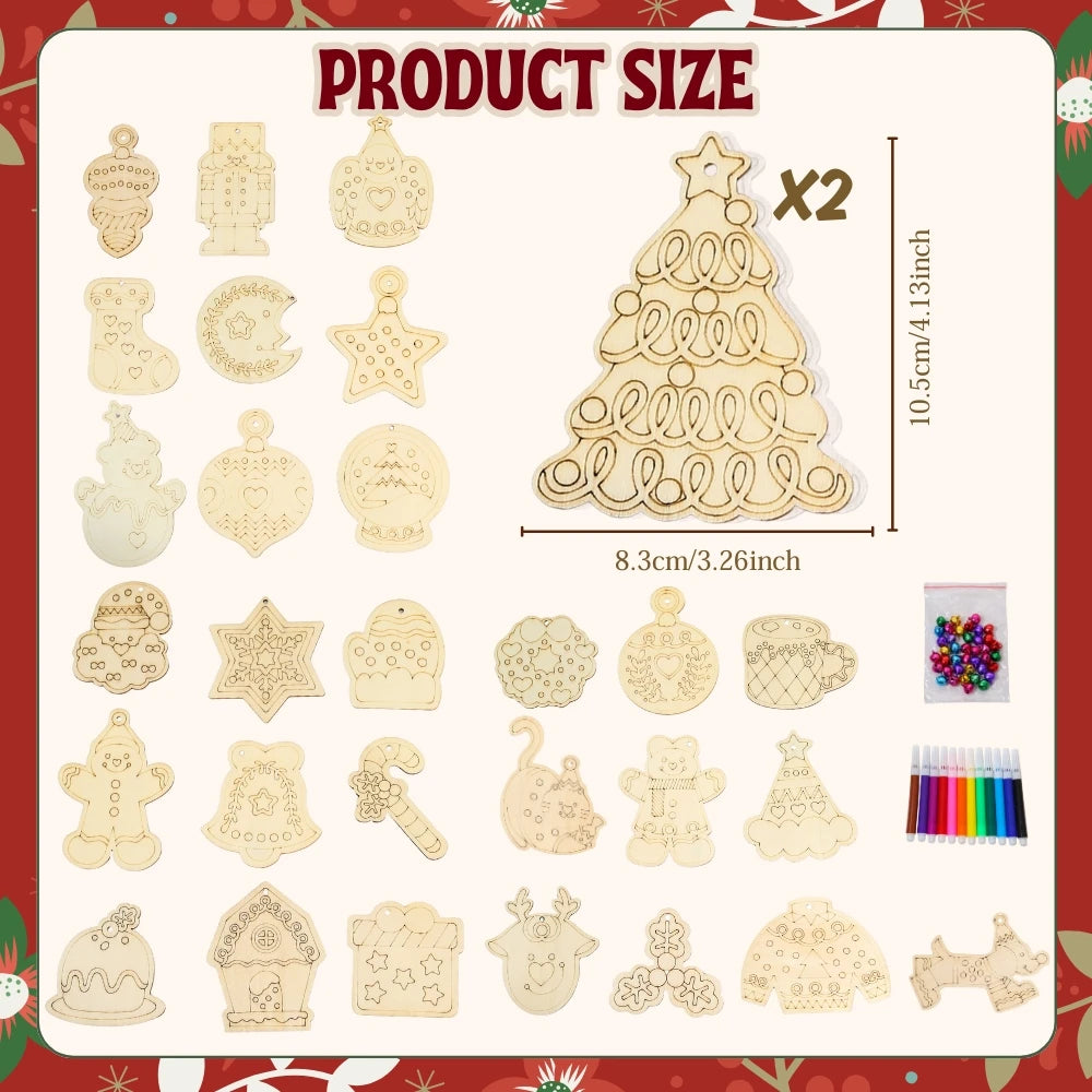 Stwórz niepowtarzalny, świąteczny klimat w swoim domu! Ten zestaw zawiera aż 60 zawieszek w 30 różnych wzorach, wykonanych z naturalnego drewna. Każda ozdoba jest niedokończona, co daje Ci możliwość własnej personalizacji – możesz je pomalować, ozdobić brokatem czy dodać swoje akcenty.